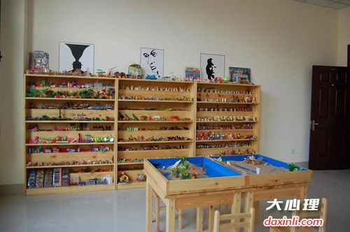 沙盘治疗室内,常常有两个沙盘,一个是干燥的沙盘,一个是湿润的沙盘,两个沙盘里都盛有沙子;在沙盘的两侧,往往有上千种造型各异的沙具,有动物、植物、人物、交通工具、家具等。被治疗者可以选择他所感兴趣的任何沙具任意摆放在两个其中之一的沙盘里。然后治疗师和来访者一起解读沙盘和水具所构成的整个画面的心理学意义。通过摆放过程和分析过程,治疗的作用从而产生。
